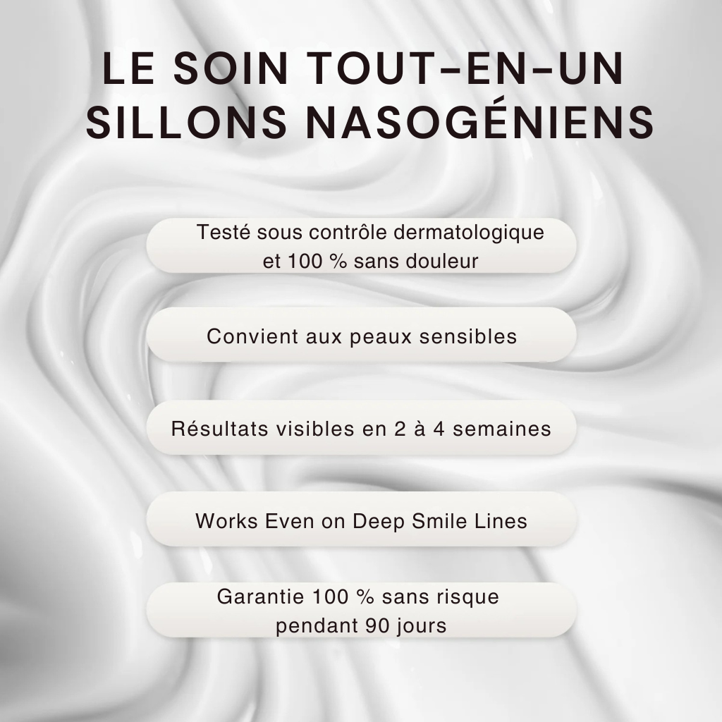 Le résultat : Vos sillons nasogéniens bénéficient enfin d'un véritable boost de collagène combiné à une absorption maximale des actifs. Dès 2 semaines, votre visage est visiblement plus lisse, repulpé et rajeuni.