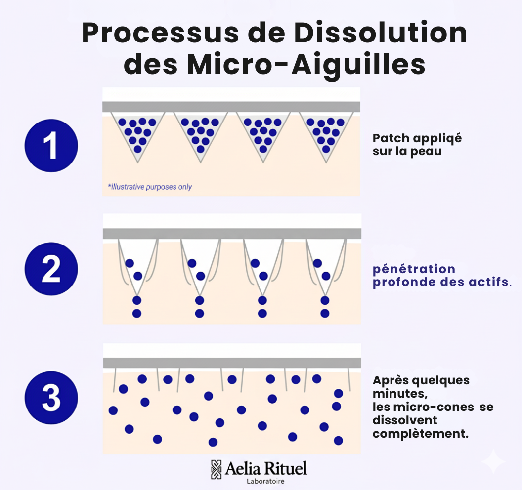 La technologie : Chaque patch contient 1 800 micro-aiguilles qui délivrent les actifs concentrés exactement là où votre peau en a besoin : dans les couches profondes du derme.
