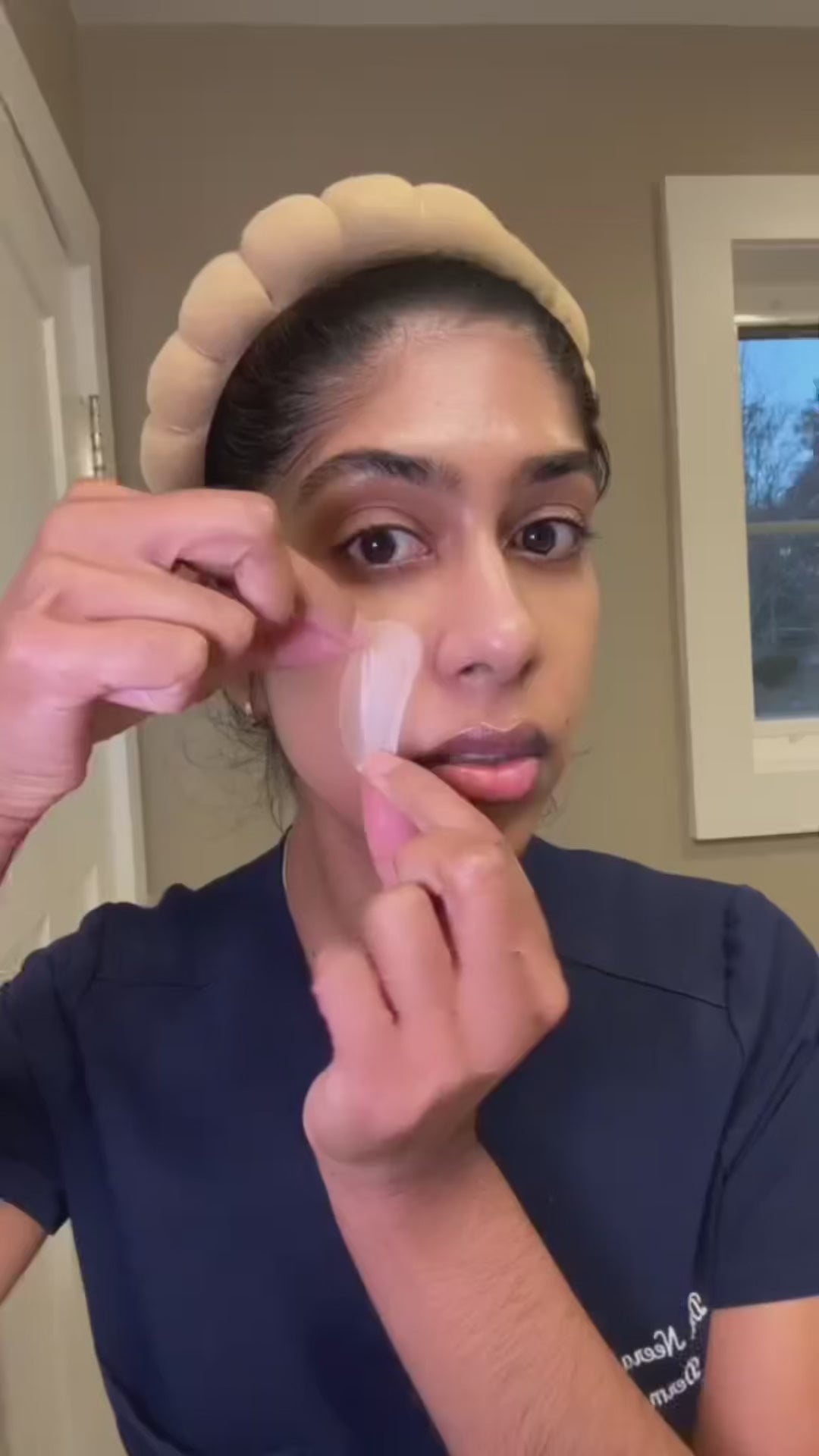 Nettoyez et séchez parfaitement la zone des sillons nasogéniens (du nez aux coins de la bouche). Retirez tout maquillage pour garantir une adhérence parfaite.